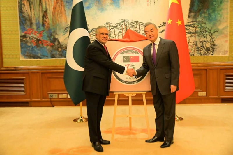 Deputy Prime Minister and Foreign Minister H.E. Senator Mohammad Ishaq Dar, together with Chinese Foreign Minister H.E. Wang Yi, jointly unveiled the logo commemorating the 75th anniversary of Pakistan-China diplomatic relations, heralding a year of celebrations to honour this iron-clad friendship.