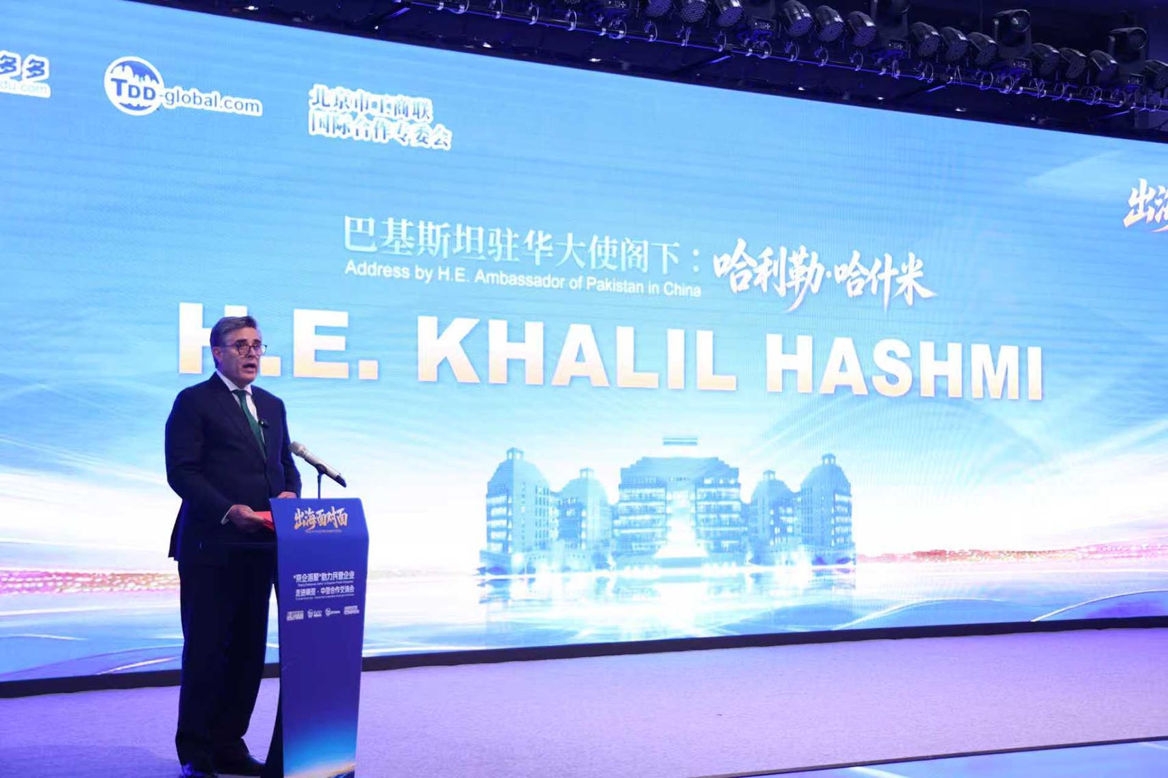 Pakistan top envoy to China, Ambassador Khalil Hashmi addressed a China–Pakistan Investment Promotion Conference today in Beijing. The conference was organized by IBI Guolian Gufan Group in collaboration with Pakistan Embassy, Beijing Federation of Industry and Commerce, and local district authorities. Over 70 Chinese companies from across various sectors participated.